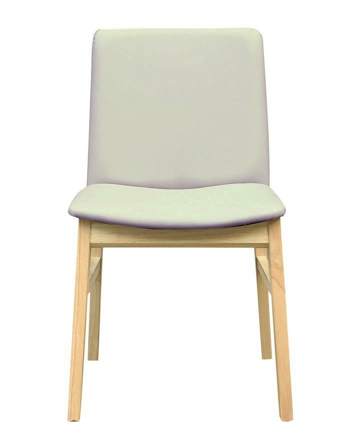 Silla de diseño, multiusos, madera de haya, barnizada natural, asiento y respaldo tapizado similpiel gris