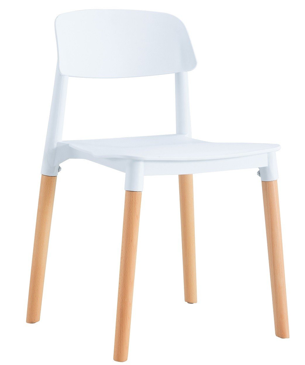 Silla de diseño, apilable, madera, asiento y respaldo de polipropileno de color blanco. Otros colores disponibles