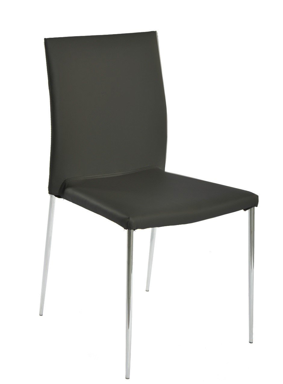 Silla de diseño, apilable, armazón metálico con acabado cromado, asiento y respaldo tapizados en similpiel de color negro. Otros colores disponibles.