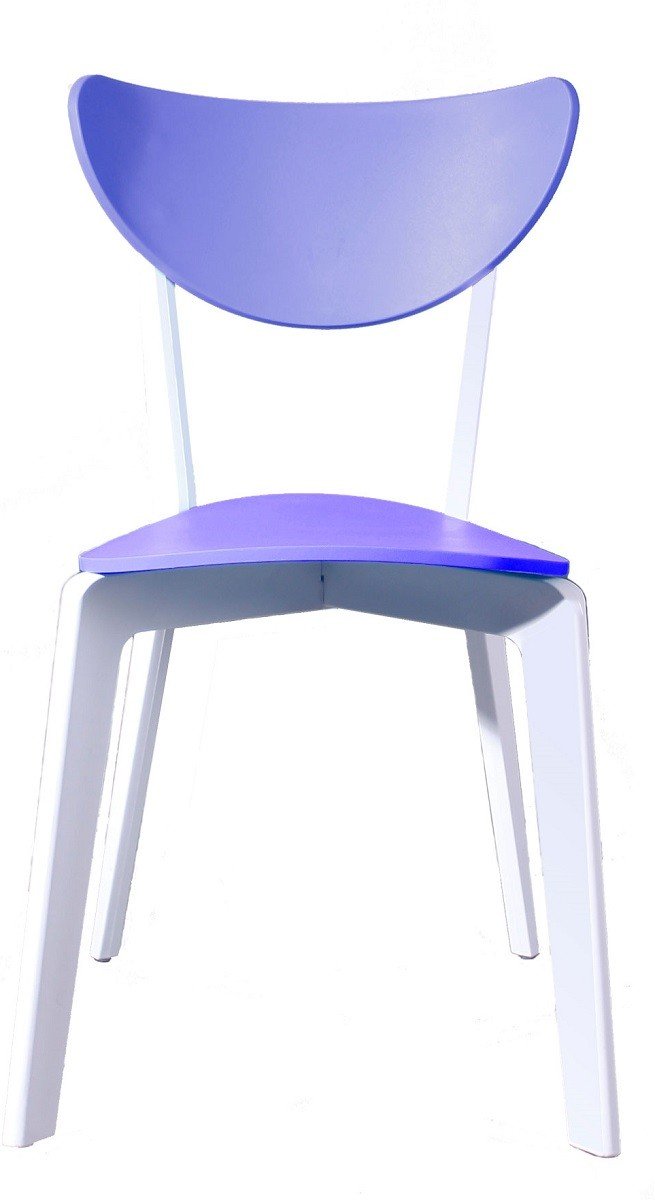 Silla de diseño, polipropileno inyectado de color blanco. Asiento y respaldo de color azul. Uso en exterior e interior. Otros colores disponibles.