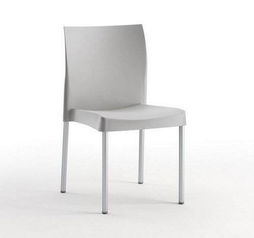 Silla apilable, aluminio, polipropileno gris. Uso en exterior e interior. Otros colores disponibles.