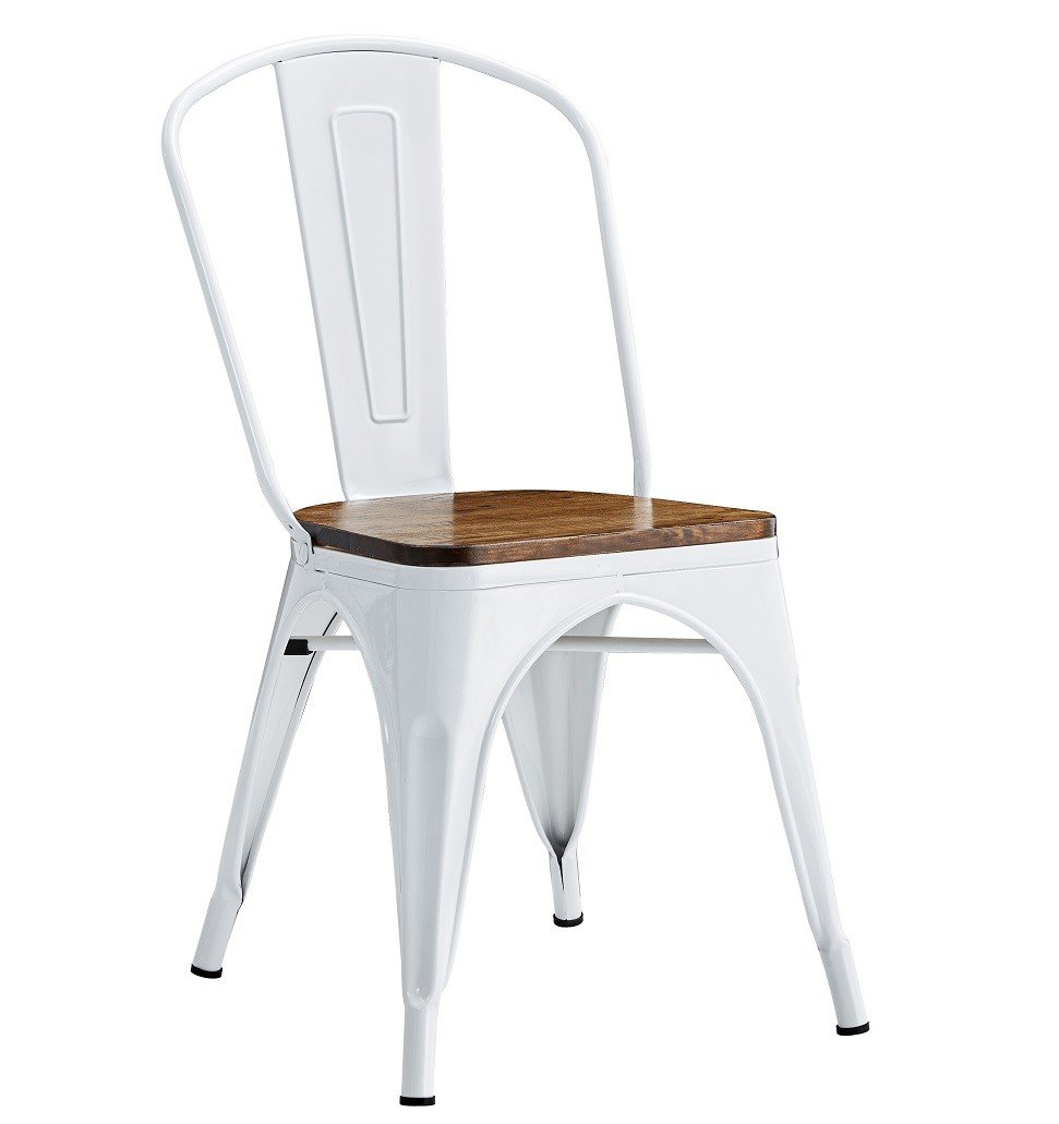 Silla TOL EK WOOD, acero, blanca, asiento madera