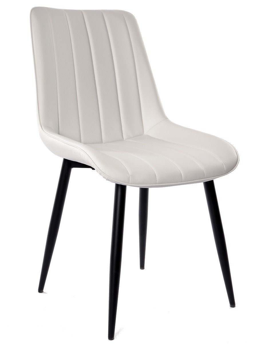 Silla de diseño, armazón metálico con acabado epoxi negro, tapizado en similpiel blanca. Otros colores disponibles.