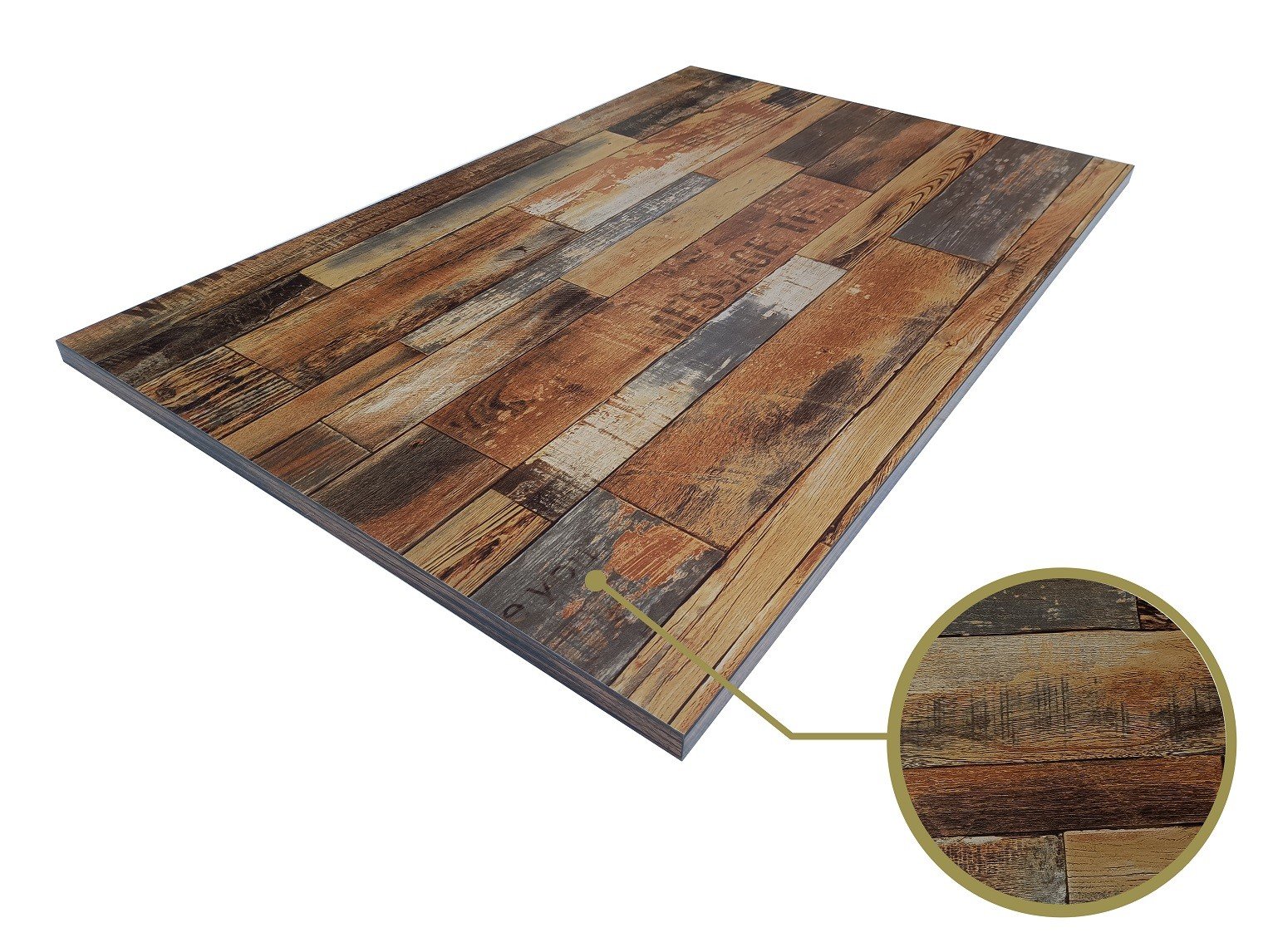 Tablero de mesa vintage, 25 mm de espesor. Formato rectangular de 110 x 70 cms. Canto de PVC